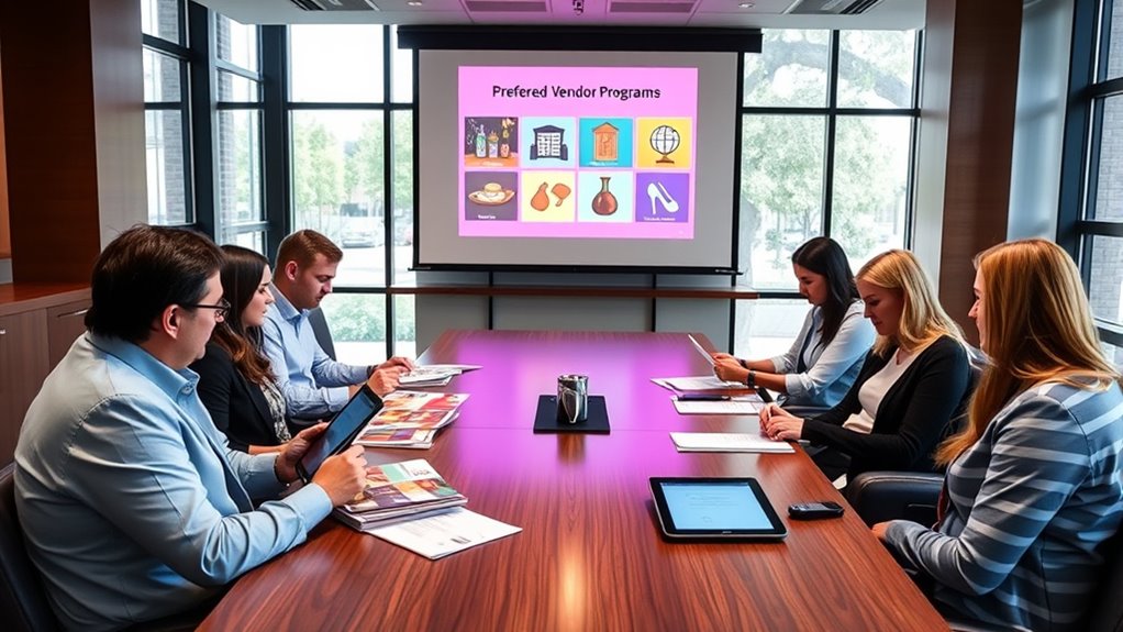 Preferred vendor programs can influence your pricing strategies by giving you leverage in negotiations. When you’re on the preferred list, venues might be more open to flexible pricing or added perks, knowing you’re a trusted partner. Use negotiation tactics like highlighting your value and long-term partnership potential. However, stay aware that some venues may have fixed rates, so understanding the program’s impact helps you better plan your negotiations.
