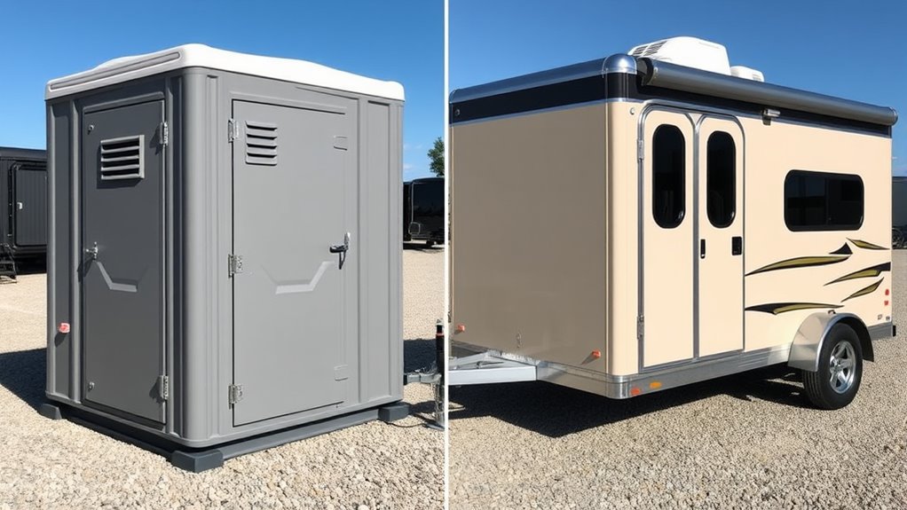Luxury trailers offer better long-term value because they combine luxury amenities, aesthetic appeal, and durability, making them more cost-effective over time. While portable toilets might seem cheaper initially, they lack the comfort, style, and functionality that luxury trailers provide. You benefit from increased guest satisfaction, improved appearance, and fewer maintenance issues, ensuring your investment pays off through enhanced experiences and lasting quality.