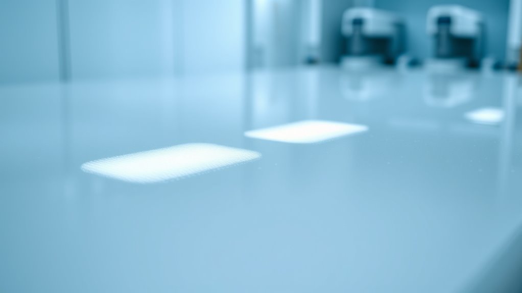 Antimicrobial surfaces are marketed as solutions to kill or inhibit germs, but the reality is often more complex. Many claims can be exaggerated, and environmental safety or long-term effectiveness isn’t always proven. Nanotechnology enhances these surfaces, yet regulatory challenges and safety concerns remain unresolved. It’s important to scrutinize product claims carefully and look for verified testing. If you want to understand how to distinguish marketing from fact, keep exploring the facts behind these innovative surfaces.