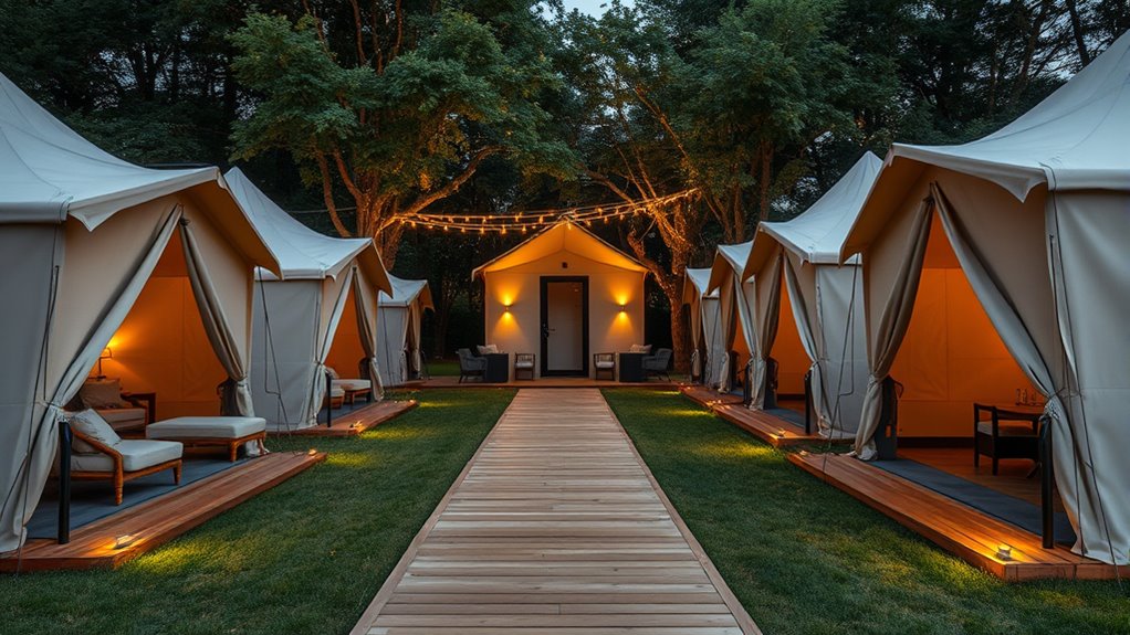Ever wondered how luxury camping redefines outdoor comfort? When you step into an upscale campground, it’s clear that every detail is designed to elevate your experience. One of the defining features is the thoughtful integration of glamping accessories that blend seamlessly with the natural surroundings. These accessories, from plush bedding to stylish lighting, aren’t just about aesthetics—they enhance your comfort and make your stay memorable. Many of these items are crafted from eco-friendly materials, reflecting a commitment to sustainability without sacrificing style. By choosing eco-conscious options like organic cotton linens, biodegradable tableware, and reclaimed wood furniture, the campgrounds demonstrate respect for the environment while maintaining a refined look. It’s this attention to eco-friendly materials that sets upscale campgrounds apart; they focus on reducing environmental impact while offering luxurious amenities.