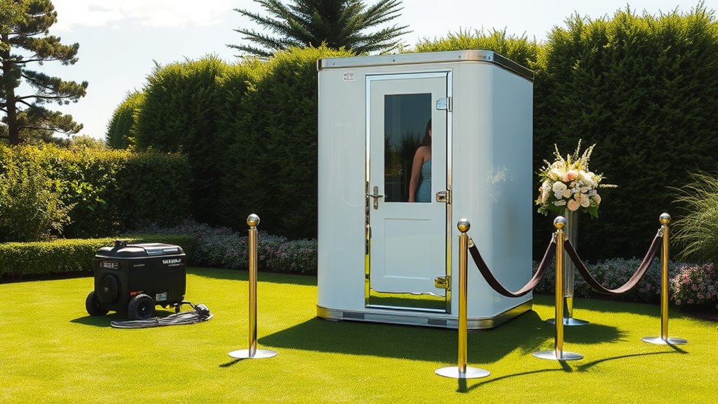 Hold onto your horses, partner! Luxury restrooms usually require permits and insurance coverage, especially for large events or public locations. You’ll need to check local permits requirements to guarantee compliance, and having proper insurance coverage protects you from potential liabilities. Failing to secure these can lead to fines or delays. So, always verify permit needs and insurance details beforehand, saving you from unexpected hassles.