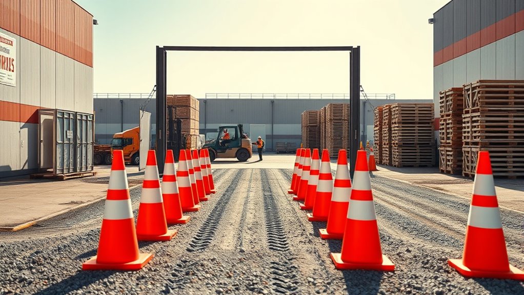 Access restrictions are the gatekeepers to smooth delivery, like a moat protecting a castle. Common types include weight limits, height restrictions, and time-specific access. You should also watch for site access signage that highlights these rules. Knowing these restrictions helps you avoid delays and guarantees your delivery arrives on time, without any surprises. Planning ahead keeps the process flowing as smoothly as water through a well-maintained pipe.