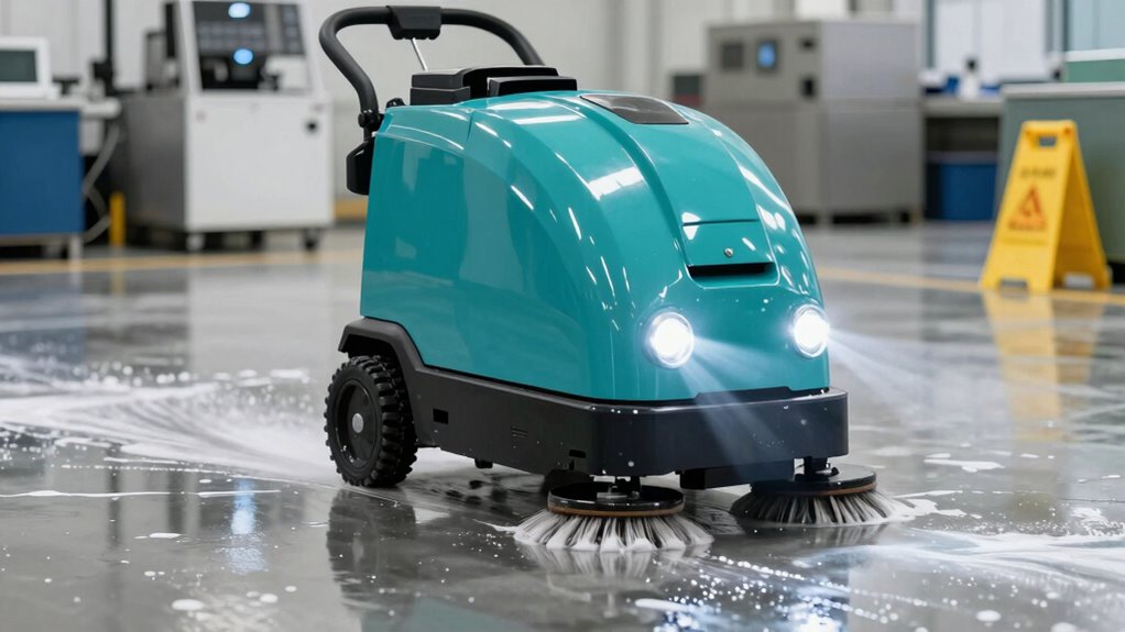 When manual mopping no longer keeps your floors clean and safe, it’s time to upgrade to a floor scrubber. These machines are designed to handle large areas more efficiently, removing stubborn stains, grease, and debris that mops might miss. They also improve hygiene and reduce slip hazards, making your space safer and more professional. If you want to discover how floor scrubbers can transform your cleaning routine, there’s more to explore below.