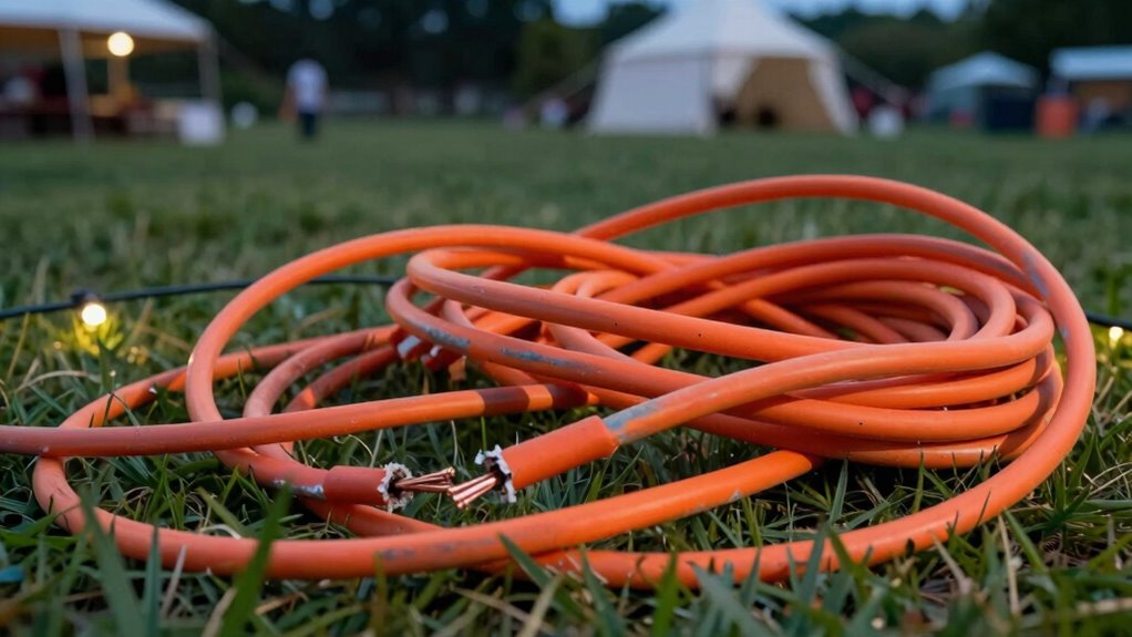 To keep your outdoor event safe and running smoothly, choosing the right extension cord gauge is essential. Don’t let a small mistake turn into a big problem—think of it as putting all your eggs in one basket. By paying attention to the cord’s gauge and avoiding shortcuts, you guarantee everyone stays safe and your equipment works flawlessly. Remember, a little caution now saves you from a headache later; it’s better to be safe than sorry.