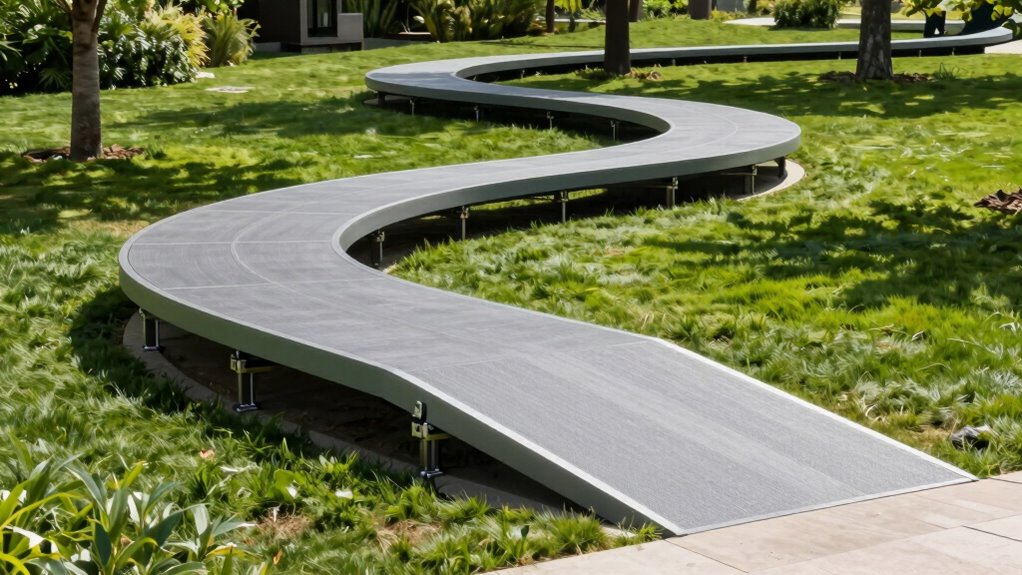 By mastering the art of planning landings and turns, you become the architect of seamless mobility, weaving together modular pieces like a skilled conductor directing a symphony. Think of your ramp system as a river, flowing smoothly through every twist and turn, guiding users effortlessly. With thoughtful design and precise execution, you create a pathway that’s not just functional but a graceful dance of accessibility—turning your vision into a lasting, harmonious journey.