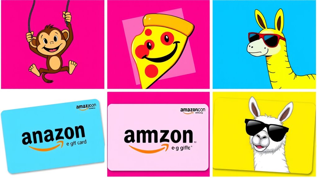 Looking for funny Amazon e-gift card designs that will make someone smile? I’ve found five great options that perfectly blend humor with thoughtful design. From playful puns to clever illustrations, these designs suit various occasions and personalities. Whether it’s a casual laugh or a witty surprise, these options stand out and leave a memorable impression. Want to discover more about each design and why they’re so popular? Keep going—there’s plenty to explore!