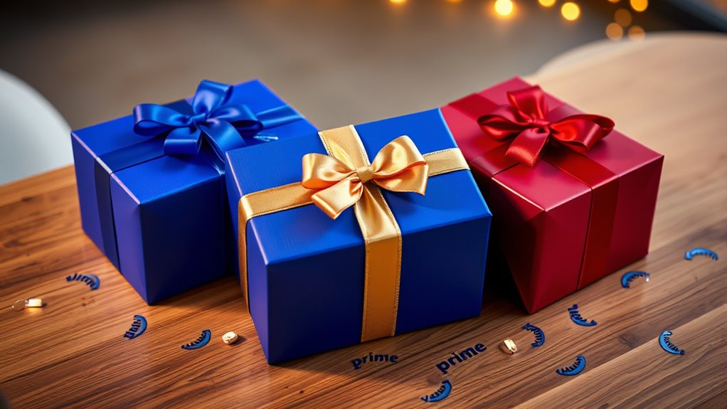 Think of these gift options like a treasure chest waiting to be discovered—each one perfect for sparking joy. Whether it’s streaming, tech, or pampering, a 3-month Amazon Prime gift subscription is a thoughtful way to show you care. It’s like giving someone a ticket to happiness, revealing new experiences and comforts. So go ahead, choose the one that suits them best—because the right gift can turn an ordinary day into something special.