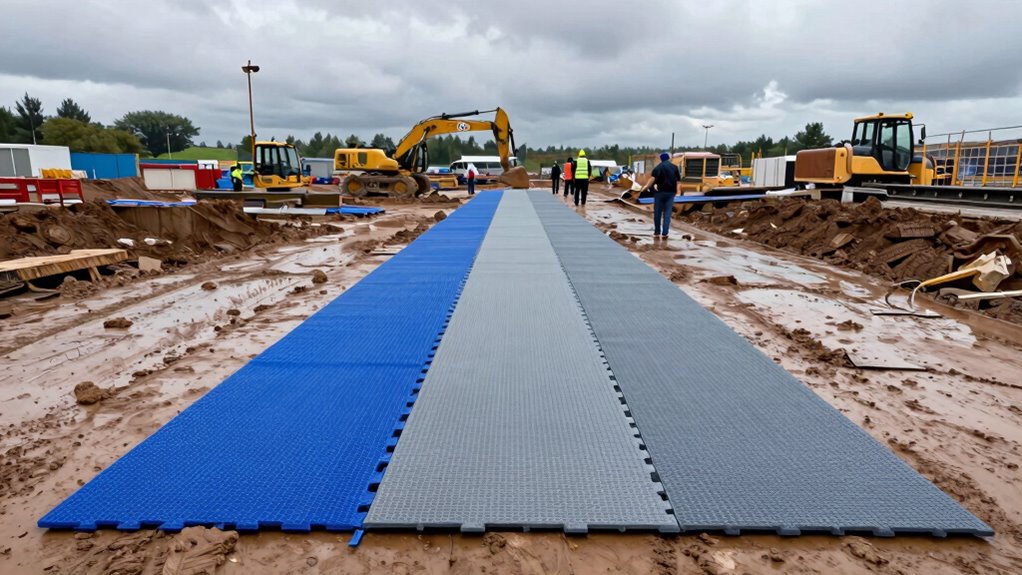 Choosing the right composite access mats is like finding the perfect bridge across turbulent waters—you need strength, durability, and adaptability. By considering factors like ground conditions and event size, you’ll make certain a safe, stable footing for your wet ground event. Remember, as the wise say, “A sturdy bridge makes the journey smoother.” With these top options, you’ll be well-equipped to conquer wet terrains and host a successful event every time.