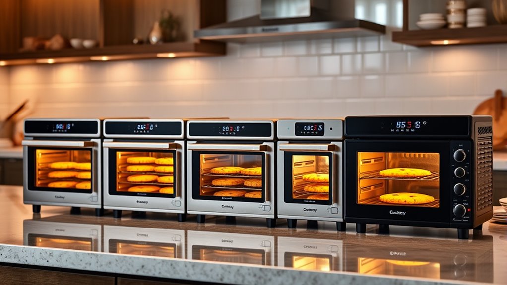 Cookeez Makery ovens come equipped with several safety features I appreciate. They have automatic shut-off to prevent overheating, non-slip feet for stability, and cool-touch exterior surfaces to avoid burns. The doors lock securely during operation, and the intuitive controls ensure safe use. I feel confident using it because these features help prevent accidents and make baking a safer, more enjoyable experience for everyone in my home.