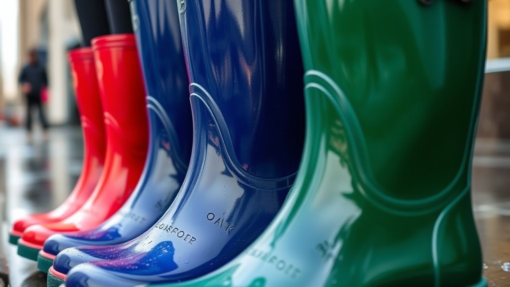 Did you know some designer rain boots actually offer great slip resistance? I was surprised too! Many brands now incorporate textured soles and anti-slip rubber to keep you steady on wet surfaces. I’ve tested a few myself, and they really do provide solid grip without sacrificing style. So, if you’re worried about slipping, look for boots with rugged, slip-resistant soles—it’s a smart way to stay safe and fashionable.