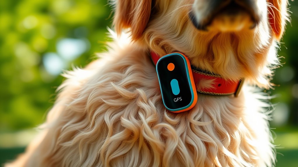 Imagine your pet’s activity level like a heartbeat in the wild—vivid and telling. Many advanced GPS trackers now monitor health metrics like activity, sleep, and even calories burned. I’ve found that these features give me real-time insights into my pet’s wellness, helping catch health issues early. With these tools, I don’t just track my pet’s location; I also keep tabs on their overall health and happiness.
