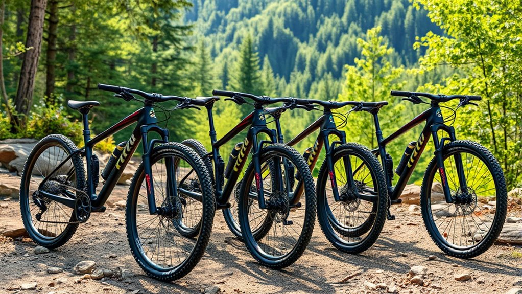 The best high-end mountain bikes of 2025 are defined by cutting-edge technologies like advanced carbon fiber frames, which reduce weight while increasing strength. I also notice the integration of smart suspension systems that adapt in real-time for smoother rides, and electronic shifting for precise gear changes. Additionally, innovative tire designs enhance grip and durability, making these bikes incredibly responsive and reliable, perfect for serious riders seeking top-tier performance.