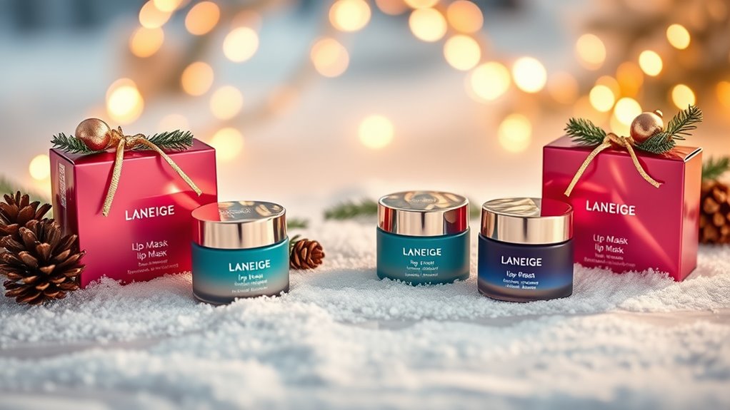 Choosing the right Laneige Lip Mask holiday set depends heavily on your skin type and specific needs. If you have sensitive skin, look for masks labeled fragrance-free or with gentle ingredients to reduce irritation risks. For dry or chapped lips, opt for formulas with hydrating ingredients like hyaluronic acid or shea butter to boost moisture. If your skin tends to be oily or prone to breakouts, choose a lightweight, non-comedogenic option that won’t clog pores. Consider your skin’s tolerance—if you’re prone to irritation, avoid masks with added fragrances or potential irritants. Additionally, select a product formulated to address your particular concerns, whether that’s aging, pigmentation, or sensitivity. Matching the mask to your skin type ensures comfort, effectiveness, and the best results.