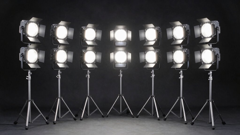 When selecting an LED flood light tripod, I consider factors like brightness levels to match your needs and sturdy stability features to prevent wobbling. Weatherproof durability standards ensure your lights hold up outdoors, while adjustable light heads give you flexibility in directing illumination. finally, I check for compatible power sources to keep your setup reliable and hassle-free.