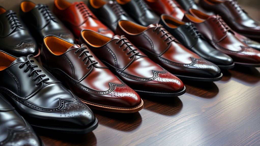 While luxury men’s dress shoes often come with a higher price tag, they’re generally an investment in quality and longevity. Typically ranging from $150 to $300, these shoes strike a balance between craftsmanship and affordability. Paying more often means better materials, such as genuine leather, reinforced stitching, and refined finishes, which enhance durability and comfort. Comparing the price-to-quality ratio helps determine if a higher cost is justified by superior design and construction. Cheaper options might save money upfront but often sacrifice materials and longevity, leading to more frequent replacements. When choosing, consider the overall value—style, comfort, durability, and brand reputation—so your purchase aligns with your budget and provides long-term satisfaction. Ultimately, investing in quality shoes pays off over time.
