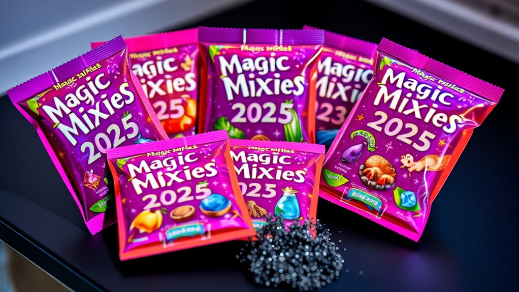 Choosing a themed variation of the Magic Mixies 2025 Refill Pack can considerably enhance the play experience by offering unique magical creatures, colors, and special effects. These packs are designed around specific themes like mermaids, wizards, or mythical beasts, providing tailored ingredients and accessories that deepen the storytelling. Availability varies, with some themes released as limited editions or seasonal offers, making them perfect for collectors. Many themed packs include exclusive ingredients or features not found in standard sets, encouraging kids to expand their magical worlds and customize their play. Whether you’re drawn to enchanting mermaids or legendary creatures, these variations let children personalize their potion-making adventures and keep their magical universe fresh and exciting.