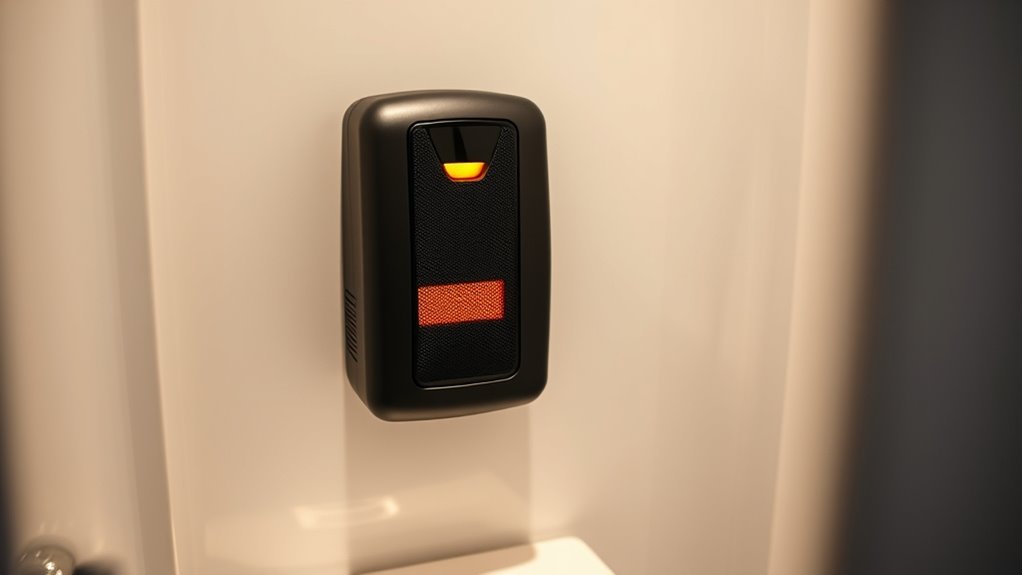 The size and portability of a ceramic portable restroom heater play a crucial role in how easily it can be moved and installed. These heaters vary from compact units under 8 inches tall to larger models around 10 inches, impacting their portability and fit in tight spaces. Lightweight designs, often weighing less than 5 pounds, make repositioning quick and effortless, especially in confined restroom areas. Some models include foldable features or handles, further enhancing portability and ease of transport. The overall dimensions determine how well the heater fits in limited or temporary restroom setups, ensuring it doesn’t obstruct movement or violate space constraints. Choosing a size that balances power with portability ensures you get cozy comfort without sacrificing convenience.