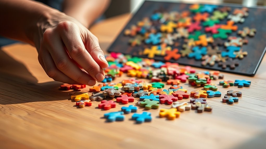 Since engaging with puzzle games can boost various cognitive functions, it’s important to contemplate how they challenge your mental skills. Many puzzle games help improve memory, attention, and problem-solving by requiring active mental engagement. Regularly solving puzzles can also delay cognitive decline and lower dementia risk, making them a smart choice for long-term brain health. Additionally, they stimulate executive functions like planning, reasoning, and strategic thinking, which are essential for everyday decisions. Complex puzzles promote neuroplasticity, encouraging the growth of new neural connections and strengthening existing ones. The cognitive benefits are well-supported by research, showing that consistent puzzle-solving enhances mental agility, focus, and resilience. Choosing games that challenge your brain can be both fun and beneficial for maintaining sharpness over time.