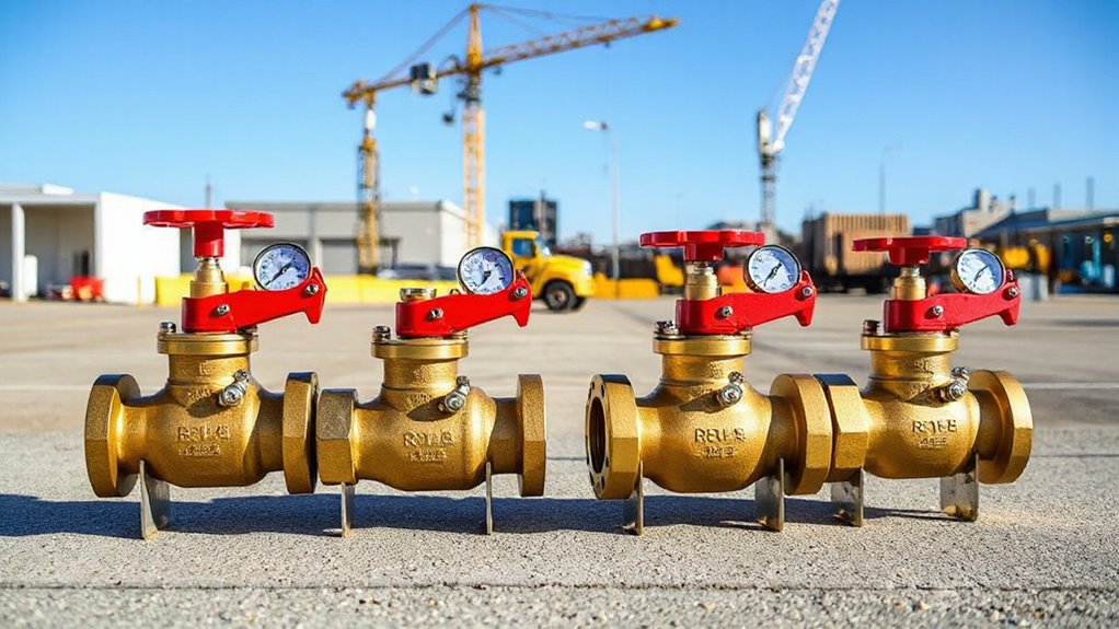 Ensuring the backflow preventer assembly can handle your system’s pressure conditions is vital for reliable operation. I always verify that the maximum working pressure of the RPZ assembly matches or exceeds my system’s operating pressure to prevent failures. It’s also essential to check that the pressure differential requirements align with any pressure fluctuations during temporary setups. I make sure the assembly’s pressure rating can accommodate surge pressures and water hammer effects, which are common in temporary systems. Additionally, I confirm that the pressure relief valve settings are appropriate for the expected pressure range to avoid unnecessary discharges or backflow incidents. Lastly, I guarantee the pressure compatibility limits meet local code requirements and suit the specific demands of my temporary installation for safe, efficient performance.