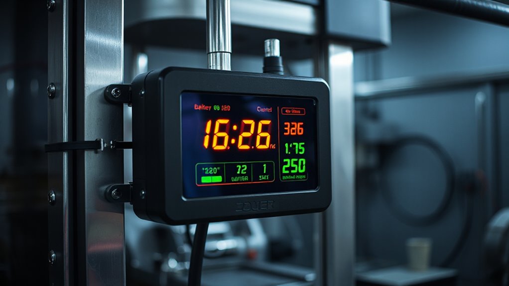 Choosing a smart battery monitor that can withstand harsh outdoor conditions is essential for reliable trailer operation. Environmental durability standards like IP67 and IPX7 guarantee your device is protected against dust, water, and moisture. An IP67 rating means it can handle immersion in water up to 1 meter for 30 minutes, ideal for rain or splashes. IPX7 offers even greater protection, allowing submersion for up to 72 hours without damage, making it perfect for wet environments. Dustproof ratings prevent debris and particles from interfering with electronic components, maintaining performance in dusty or sandy settings. Selecting a monitor with these ingress protection standards guarantees long-term durability, reduces maintenance, and ensures consistent operation in outdoor or rugged conditions.