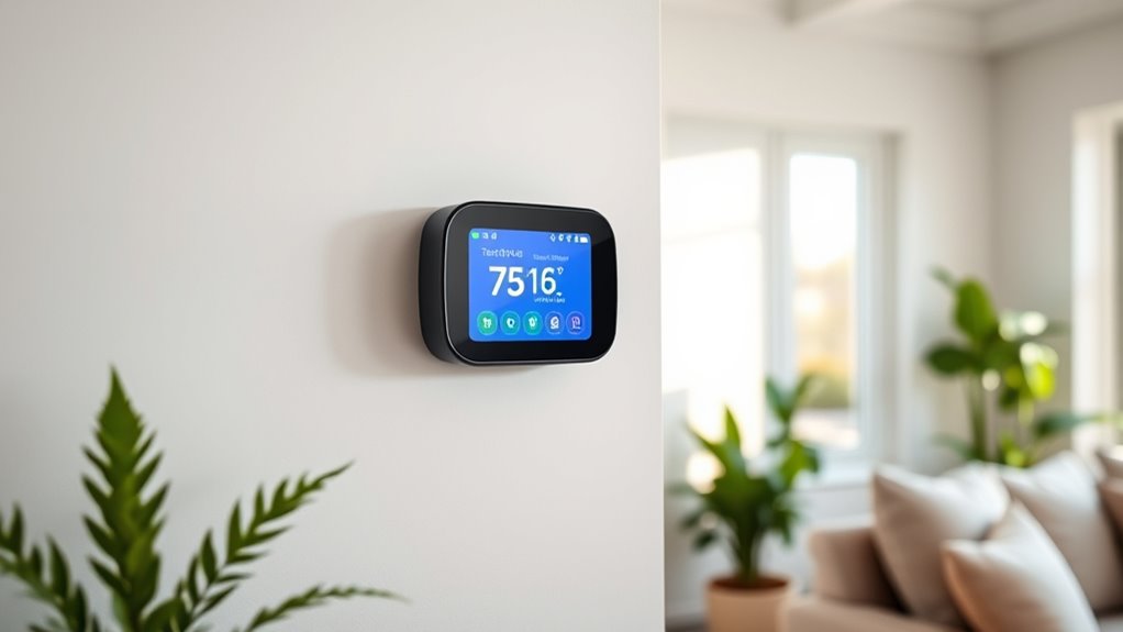 Smart thermostats adapt to changing weather patterns by using real-time data from weather services and sensors in your home. I’ve seen them automatically adjust your temperature settings based on forecasts, outdoor temperature fluctuations, and humidity levels. This proactive approach helps maintain comfort and efficiency, preventing energy waste. I love how seamless this process is—no manual adjustments needed—making my home more comfortable regardless of unpredictable weather changes.