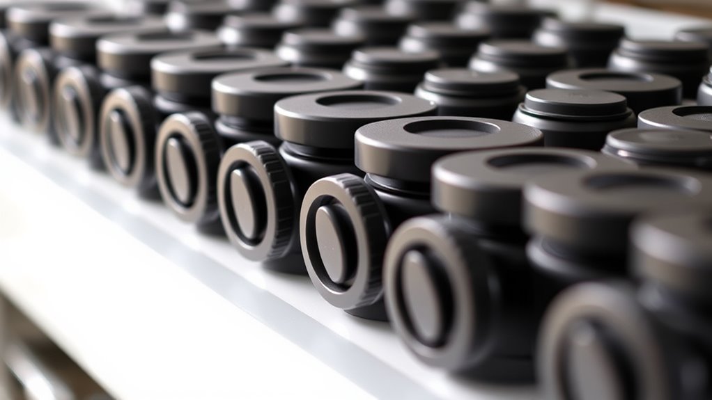 The material quality of snap-tight waste tank caps directly impacts their longevity and performance. I look for caps made from durable plastics like ABS or polypropylene, which can resist chemicals, UV rays, and harsh weather. Reinforced ears or ribs are essential for added strength, reducing cracking or breaking during frequent use or transport. Vented caps crafted from high-quality materials help manage internal pressure, preventing tank deformation or leaks caused by pressure buildup. The seals and gaskets should be made from resilient, chemically resistant materials like EPDM or silicone to ensure long-lasting, leak-proof performance. Additionally, choosing caps that comply with industry standards such as ASTM or ISO guarantees they meet safety and durability requirements, giving me confidence in their reliability over time.