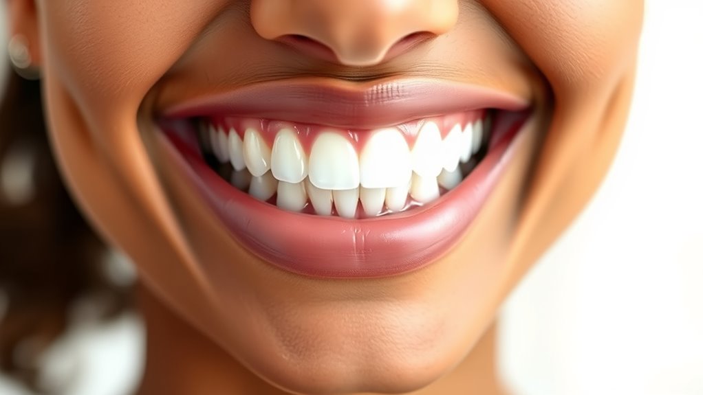 The speed and effectiveness of teeth whitening strips depend largely on their active ingredients and design features. Some strips show visible results in just one week, while others may take up to three weeks for full whitening. The concentration of whitening agents like hydrogen peroxide or carbamide peroxide is key—higher levels work faster but can increase sensitivity. That’s why sensitivity-friendly options usually have lower concentrations, offering gradual results. Design features, such as non-slip technology and extended wear times, can boost stain removal efficiency during each session. Consistent daily use, following product instructions, is essential for achieving quick, effective, and lasting results, especially for sensitive teeth. Balancing speed and efficacy helps you brighten your smile safely without discomfort.