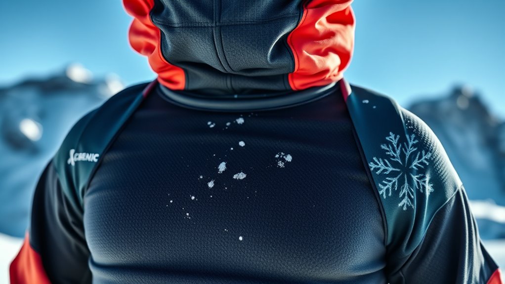 Since intense physical activity like skiing causes significant sweat, it’s essential to select thermal underwear that effectively wicks moisture away from your skin. Moisture-wicking fabrics feature specialized fibers or treatments that help sweat evaporate quickly, keeping you dry and comfortable. This prevents uncomfortable chafing and skin irritation caused by damp clothing rubbing against your skin. Proper moisture management also maintains insulation efficiency by avoiding moisture buildup, which can create cold spots and reduce warmth. Choosing thermal underwear with high moisture-wicking capabilities doesn’t just improve comfort; it enhances your overall performance on the slopes. When selecting your gear, look for fabrics specifically designed to pull sweat away from your body, ensuring you stay dry, warm, and ready for whatever the mountain throws at you.